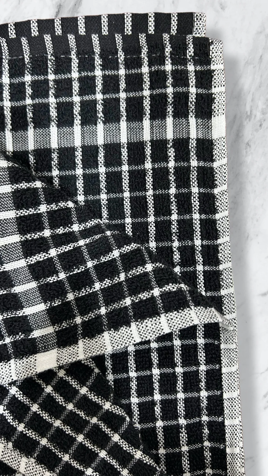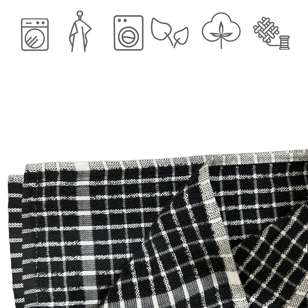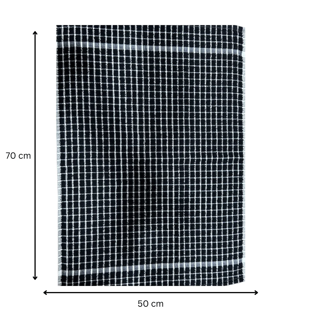 We designed this Midnight Black Grid Terry Tea Towel using premium ring-spun cotton to ensure maximum softness and durability. Because we use a high-density 300 GSM weight, this towel offers extra absorbency for heavy-duty kitchen tasks. Furthermore, the classic black-and-white grid pattern provides a modern, sophisticated look that complements any contemporary kitchen decor.