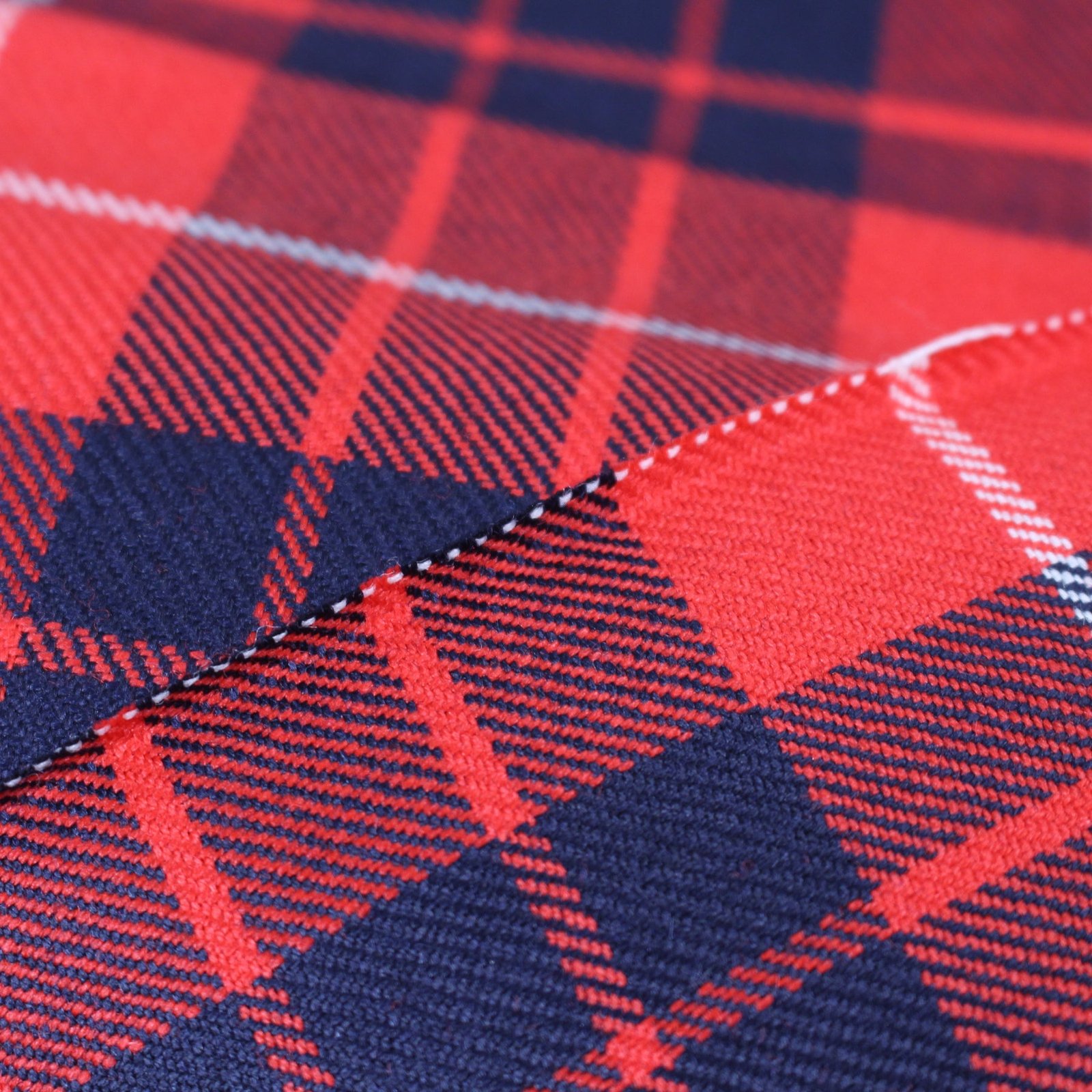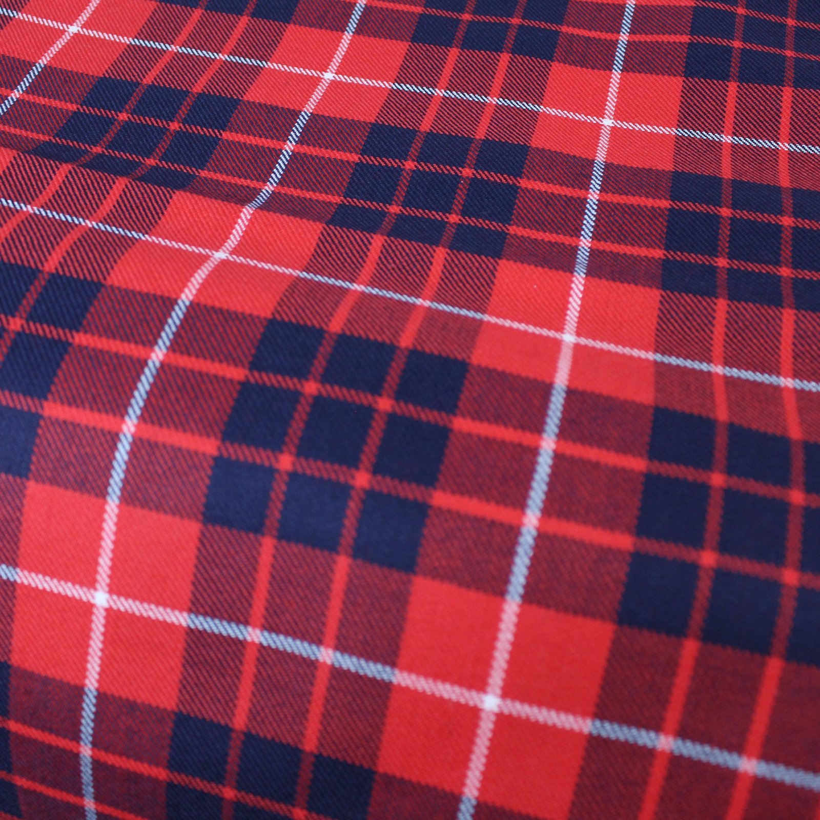 Premium red and navy plaid fabric serves as a core choice for manufacturing high-quality winter bedding and retail apparel. Home Innovators produces this 100% Cotton material using a specialized brushing process to ensure maximum softness for the end user. Furthermore, this striking tartan pattern features a vibrant red base with deep navy blocks and crisp white accents. Consequently, the fabric provides exceptional warmth and a luxurious hand-feel.