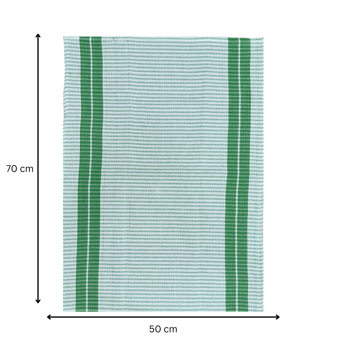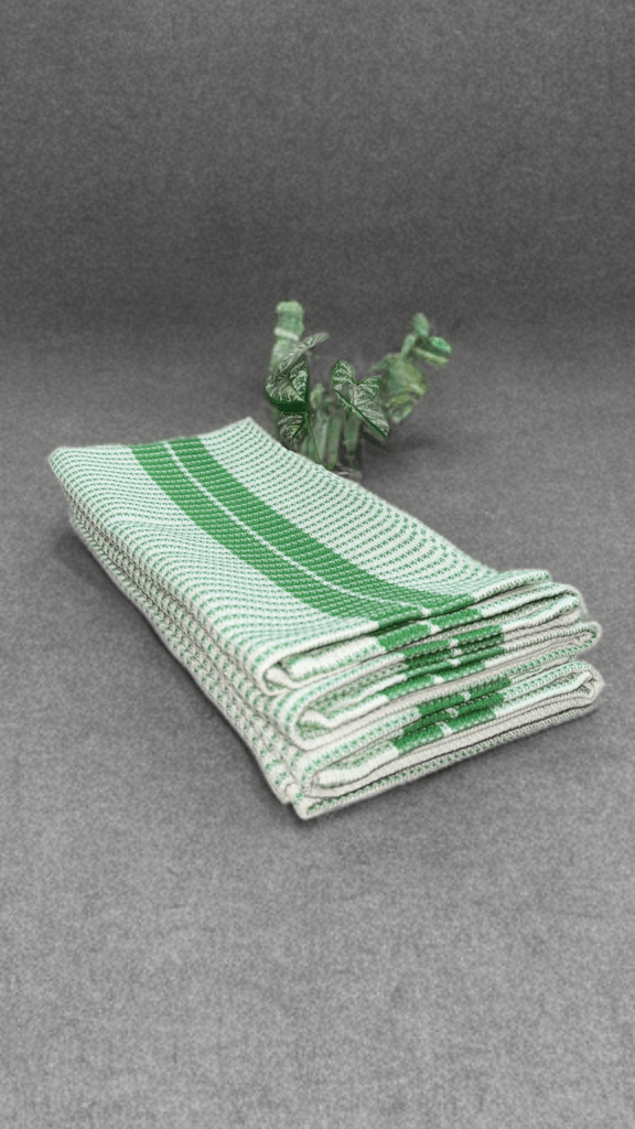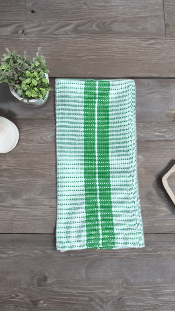 Bring freshness and function to your kitchen with our white cotton kitchen towel accented by a classic green stripe. Designed for both modern and traditional homes, this towel combines a crisp, clean look with superior absorbency, making it an everyday essential for drying dishes, wiping counters, and handling kitchen tasks in style.