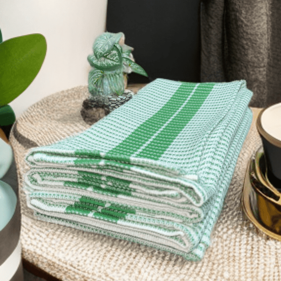 Premium White Honeycomb Kitchen Towel with Green Stripe