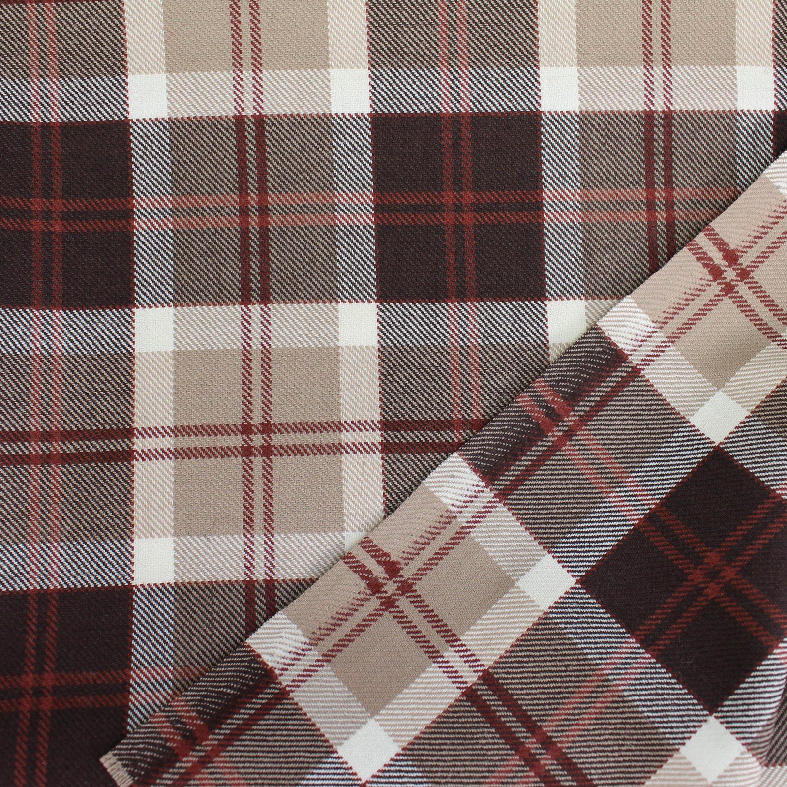 Premium Beige & Burgundy Plaid Yarn-Dyed Cotton Fabric