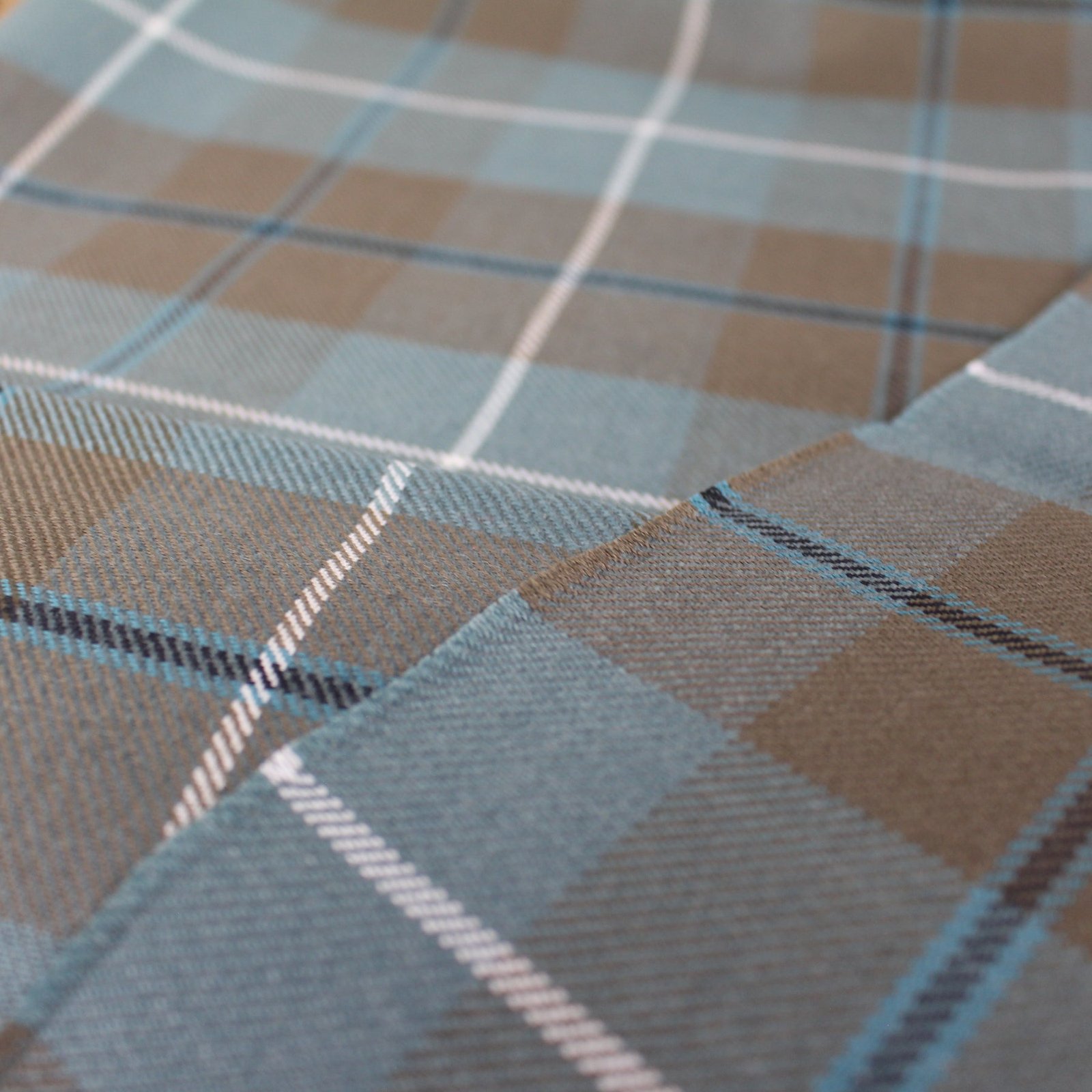 Premium 100% Cotton slate blue and taupe tartan. Premium yarn dyed textiles with a soft-brushed finish for superior warmth in commercial textile applications.