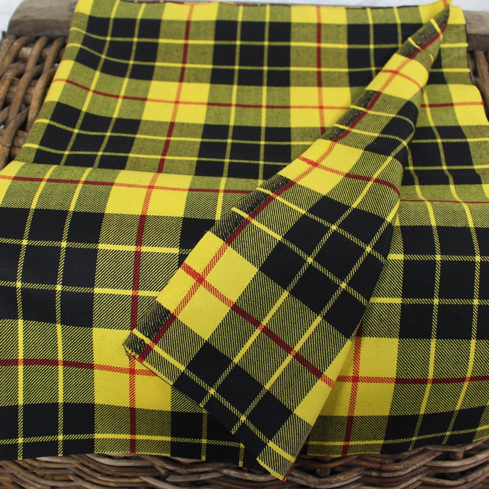 Vibrant Tartan Design: Features sophisticated yellow, black, and red hues.