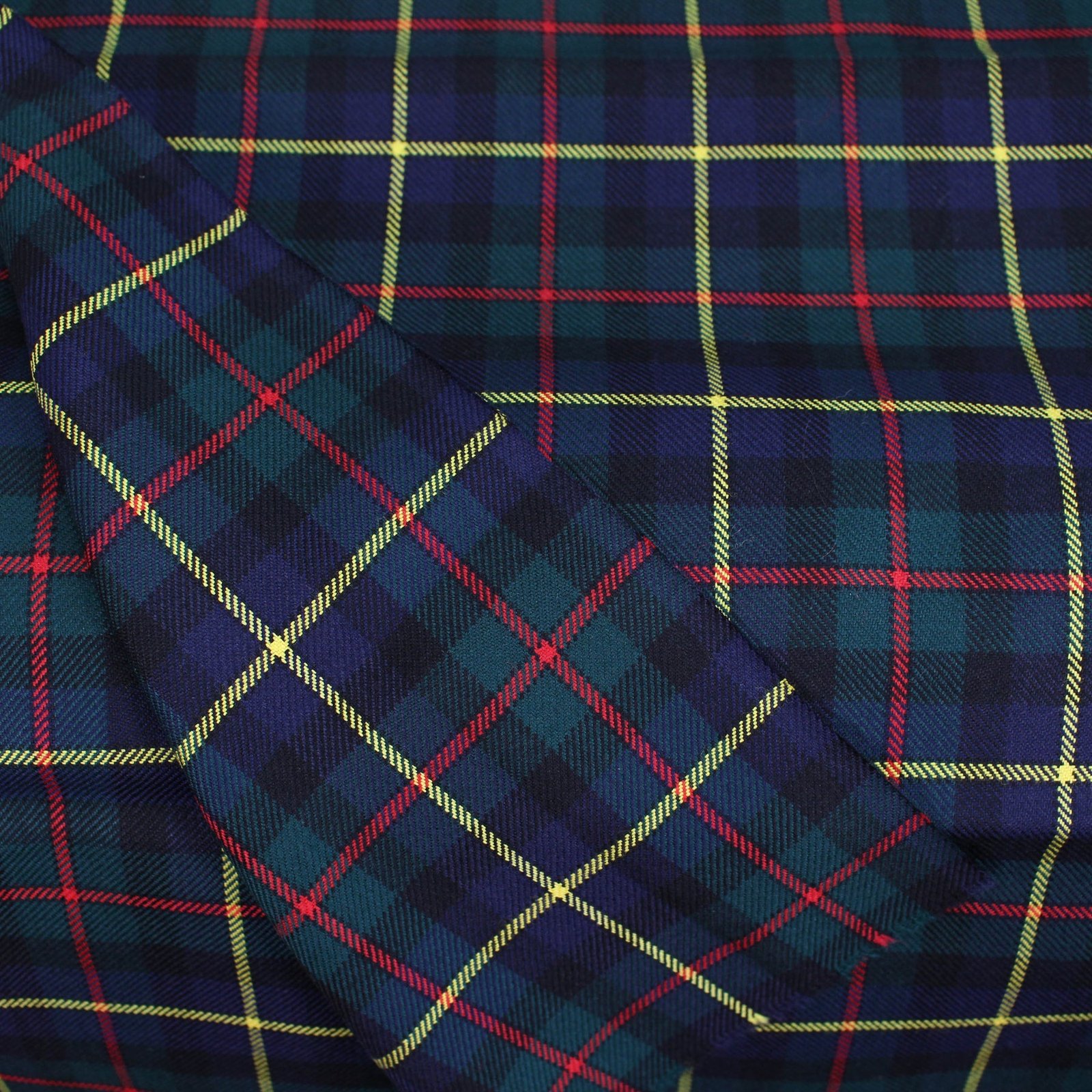 Timeless Plaid Design: Features classic navy, green, and red hues.